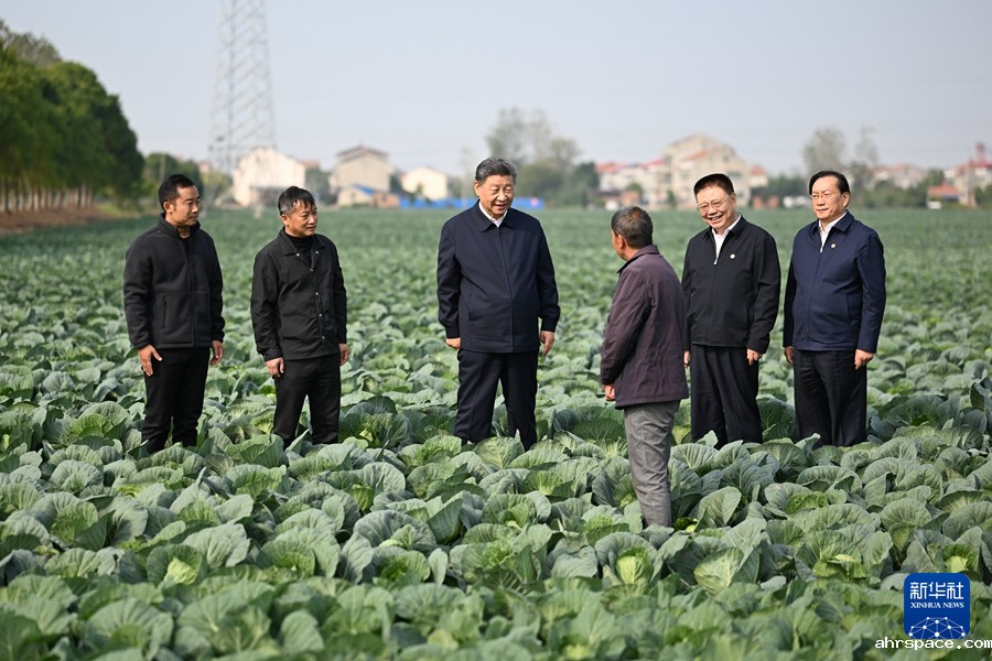 5日上午,习近平前往咸宁市嘉鱼县,首先到潘家湾镇十里蔬菜长廊考察。深秋时节,这里仍然满目青翠、生机勃勃。习近平走进田间,察看蔬菜长势,详细询问蔬菜品种、种植技术、销售等情况。他强调,农村天地广阔,农业大有可为。发展现代农业,建设农业强国,必须依靠科技进步,让科技为农业现代化插上腾飞的翅膀。他勉励当地干部群众走科技之路、质量之路、品牌之路,把蔬菜种植这个富民产业进一步做好,让更多群众增收致富。