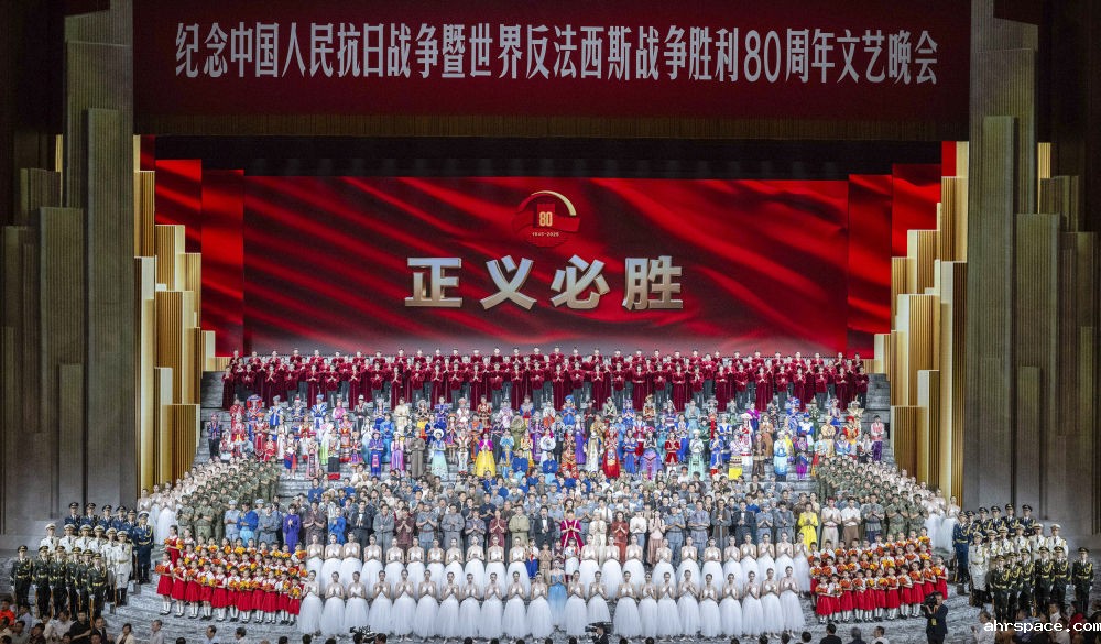 2025年9月3日晚,纪念中国人民抗日战争暨世界反法西斯战争胜利80周年文艺晚会《正义必胜》在北京人民大会堂隆重举行。新华社记者 翟健岚 摄