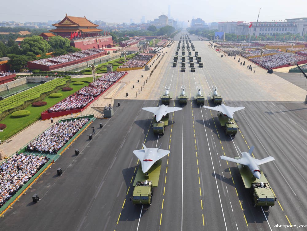 2025年9月3日,纪念中国人民抗日战争暨世界反法西斯战争胜利80周年大会在北京隆重举行。这是装备方队接受检阅。新华社记者 刘续 摄