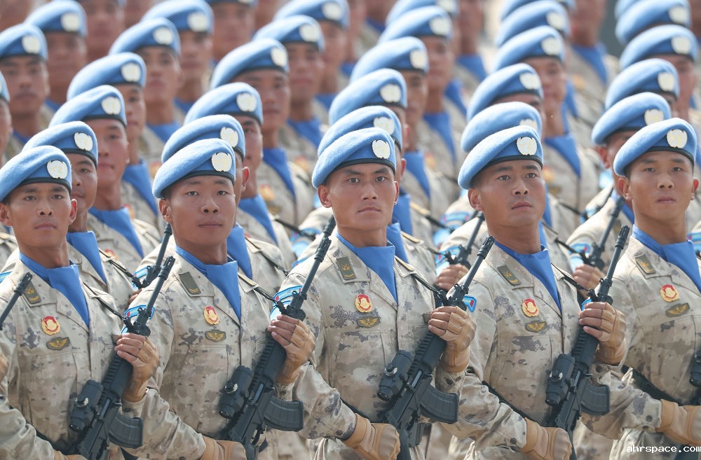 整齐的阵列行进在宽阔的长安街,维和部队方队亮丽的“和平蓝”映入眼帘,《和平—命运共同体》乐曲声在招待会上响起……这些都成为中国昂首阔步在和平正义大道上的生动注脚。