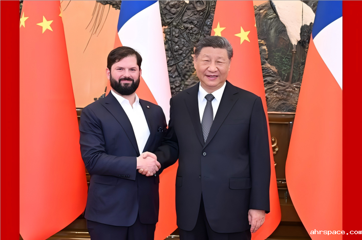 5月14日上午,国家主席习近平在北京人民大会堂会见来华出席中拉论坛第四届部长级会议的智利总统博里奇。 2025-05-15