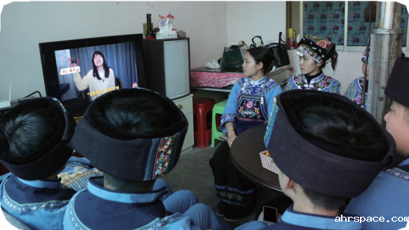 ▲黔南州布依族群众春节期间与家人围坐观看推送的宣传视频