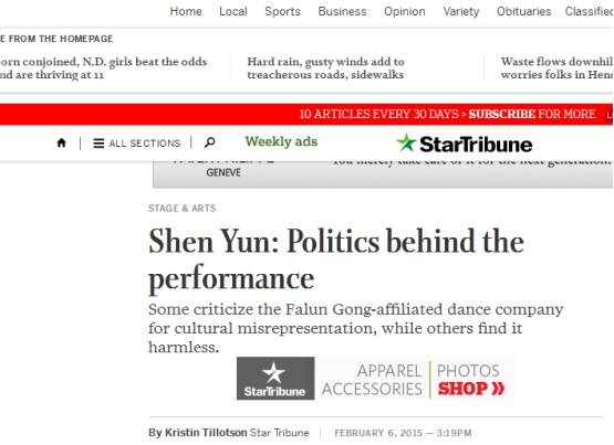 核心提示:美国《明星论坛报》著名记者克莉丝汀·蒂洛森就职于1992年,她的作品涵盖艺术、娱乐、文化、人文关怀等方面。克莉丝汀于2016年5月11日病逝后,《明星论坛报》(www.startribune.com)曾为其发表纪念文章。凯风网现将她于2015年2月6日发表在网站的《神韵:表演背后的政治因素》一文编译如下,予以纪念。克莉丝汀以她犀利的观察,和引用必威官方登录首页研究者的言论,一针见血指出了神韵表演暗藏的“玄机”。译文如下: